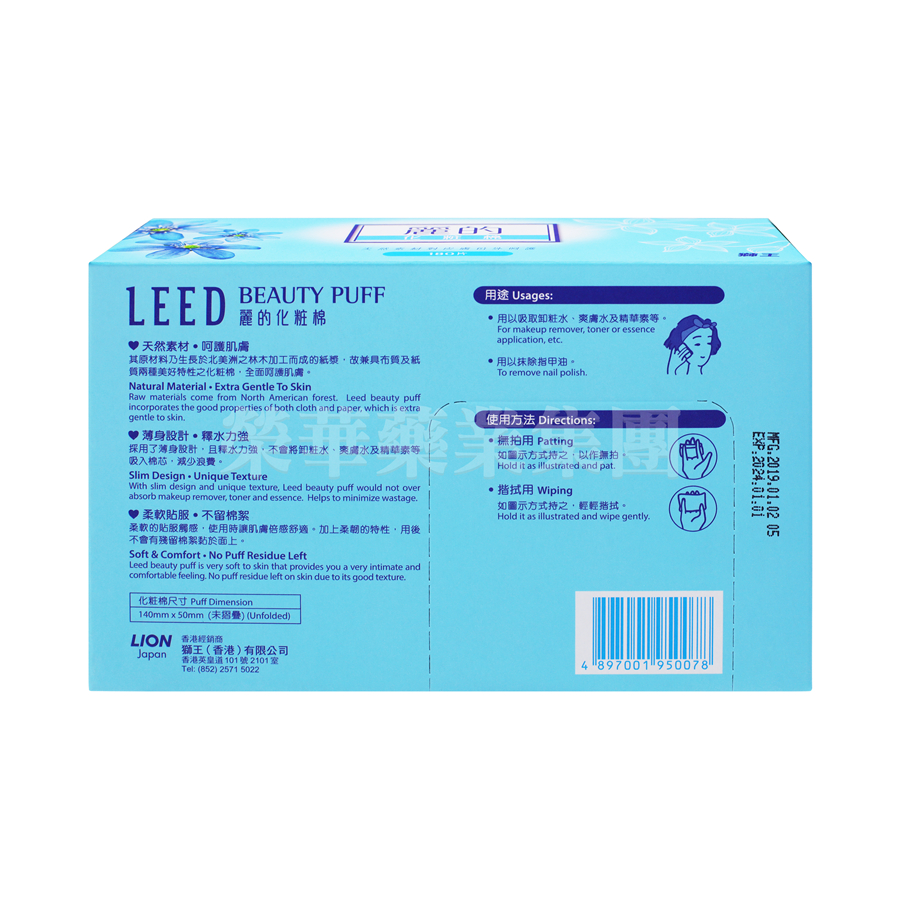 LEED 麗的獨有的超薄無紡布細緻纖維,將卸妝水平平均擴散於表面,不會吸入過量造成浪費,一抹就乾淨,可節約50%的卸妝水