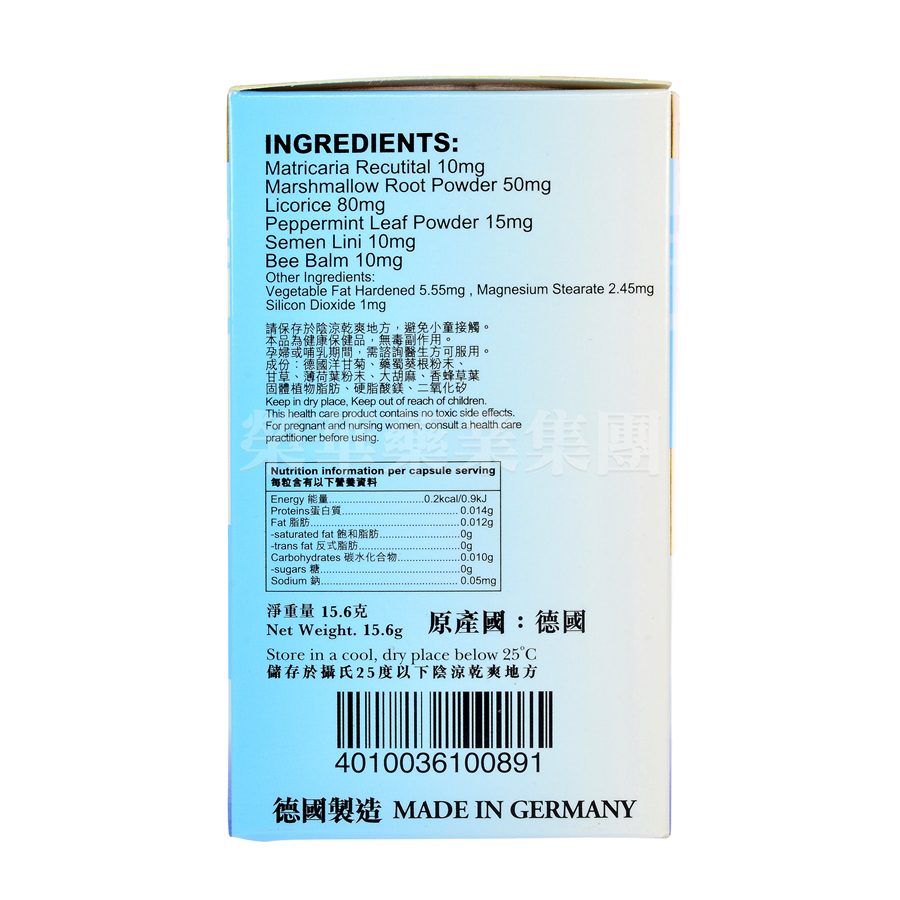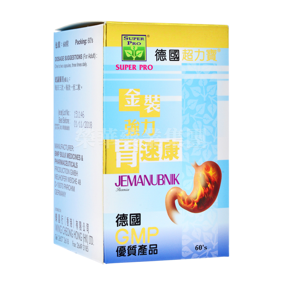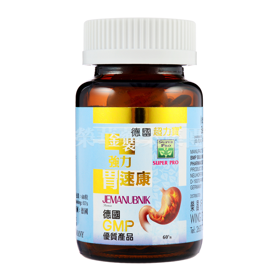 經德國最嚴謹之制藥程式GMP優質產品,為一種舒緩胃部不適之最新配方,能調節胃腸機能,控制胃液過量分泌,中和胃酸,修補胃壁破損,提升消化系統運作,抑制胃部有害細菌,強化腸胃系統,解除胃部飽滯,胃脹,胃氣,胃酸過多,胃痛等困擾,安全可靠,長期服用無不良副作用。