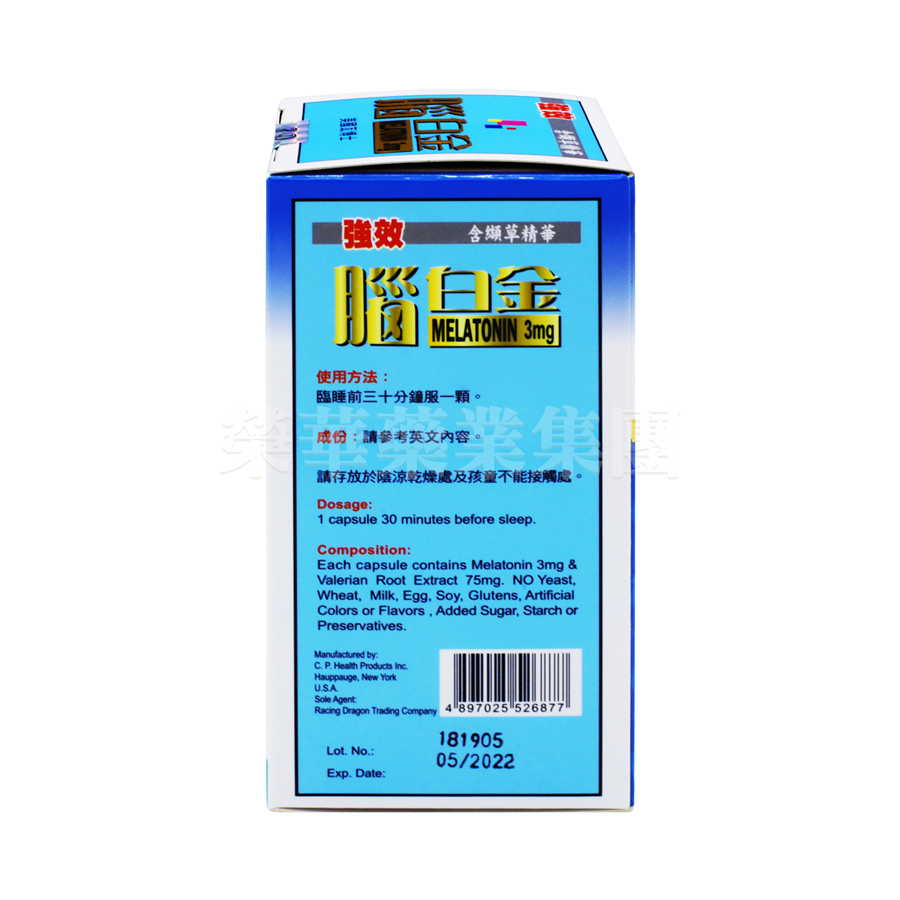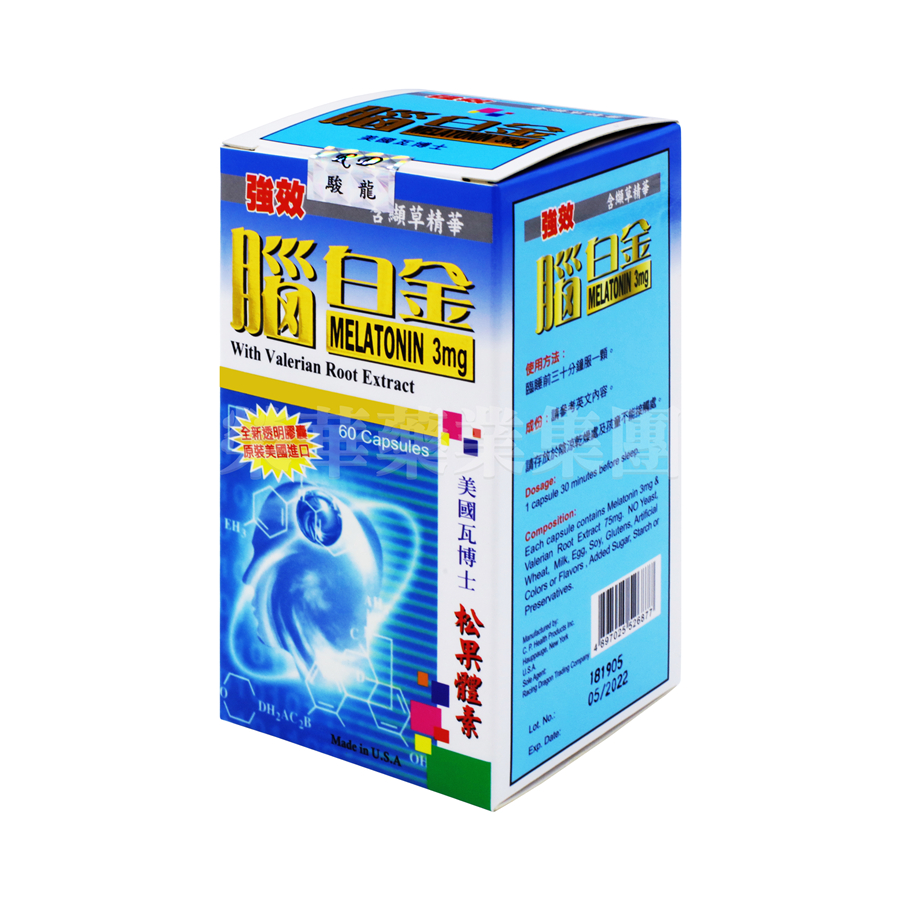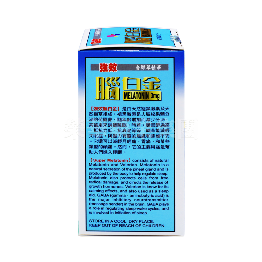 是由天然褪黑激素及天然纈草組成,褪鴨4激素是人腦松果體分泌的荷爾蒙,隋年齡增加而減少分泌。常被用來調節睡眠,時差,膽固醇過高,抵抗力低,抗衰老等等。纈草能減輕失眠症,與壓力有關的焦慮和焦躁不安。它還可以減輕月經痛﹑胃痛﹑和某些類型的頭痛。然而,它的主要用途是幫助人們進入睡眠。
