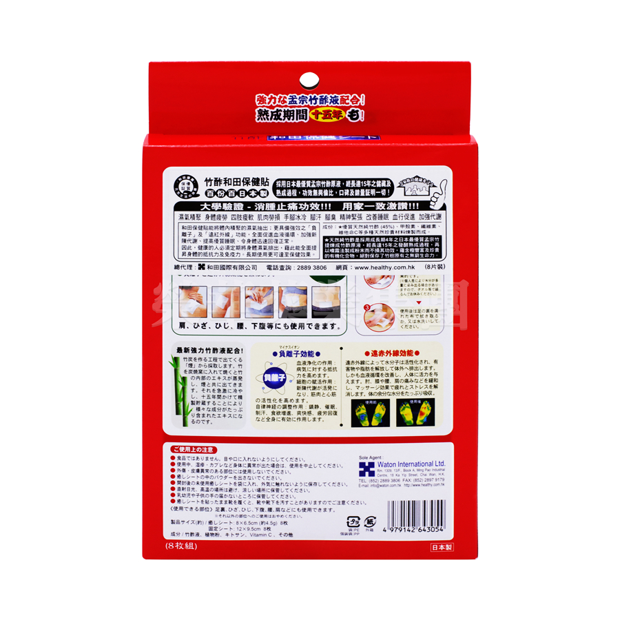 和田保健貼能將體外積聚的濕氣抽出;更具備強效之「負離子」及「遠紅外線」功能,全面促進血液循環﹑加強新陳代謝﹑提高優質睡眠﹑令身體迅速回復正常。因此,健康的人必須定期將身體濕氣排出,藉此能全面提昇身體的抵抗力及免疫力。長期使用更可達至保健效果。