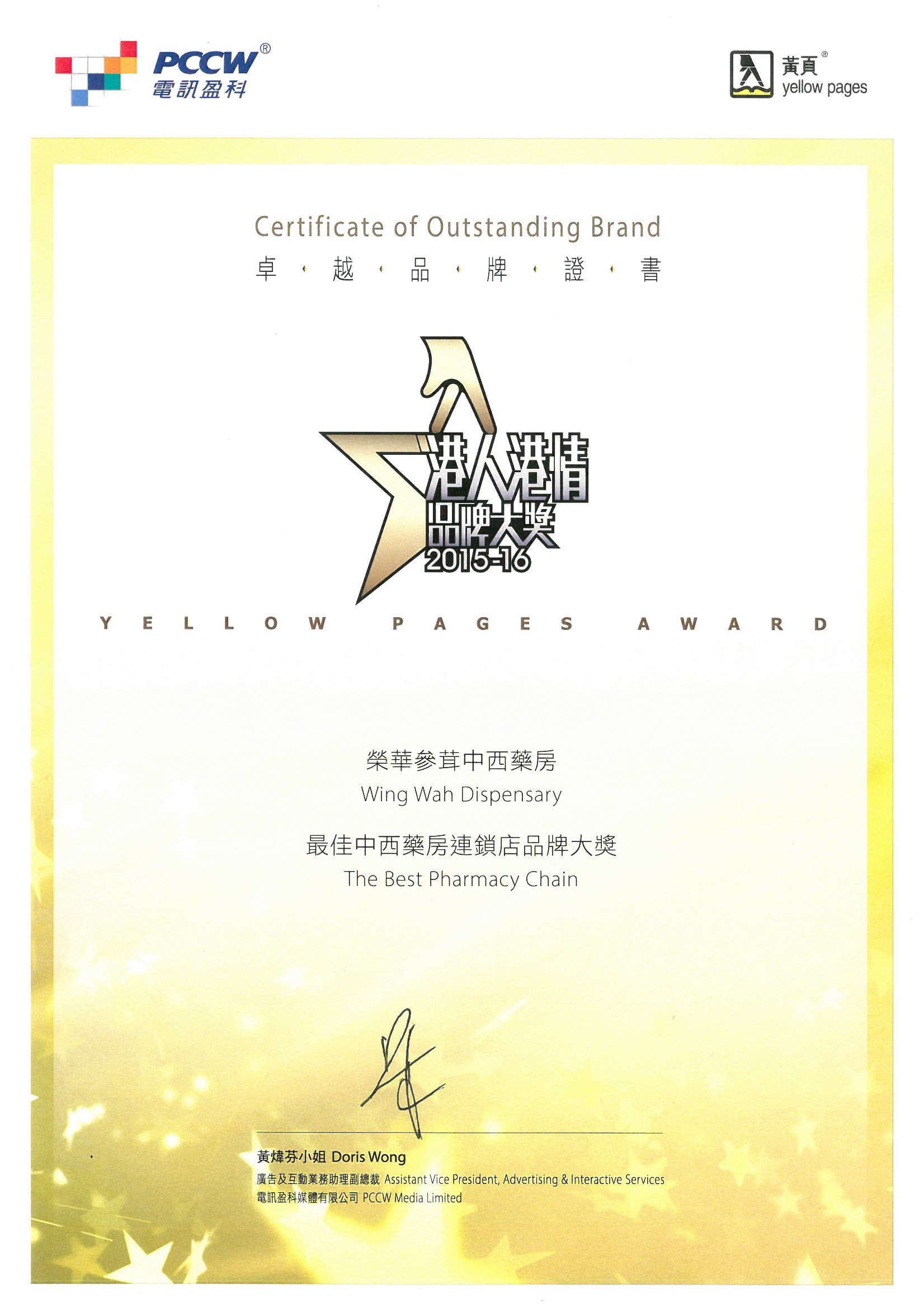 連續第三年被香港電訊盈科選為香港最佳中西藥房連鎖店。
