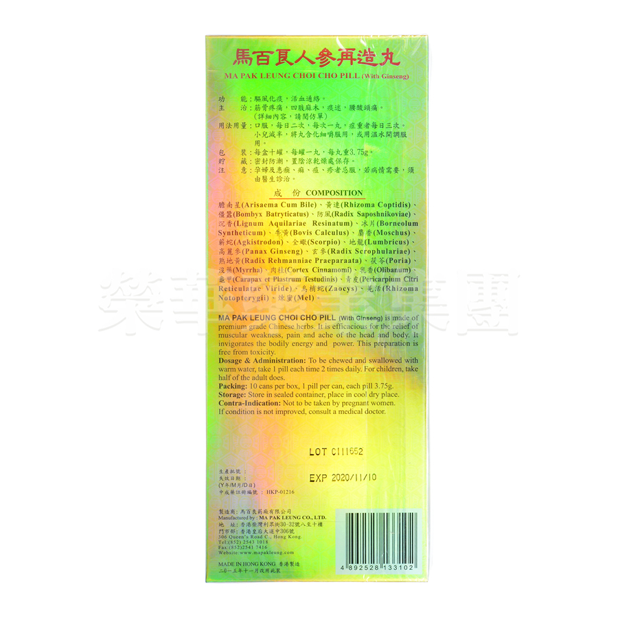馬百良人參再造丸是中風後之特效藥,療效特佳,已有很多中風。床不動例子,服用馬百良人參再造丸後,能恢復行動。