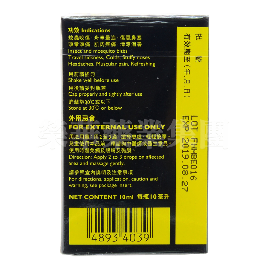 解除因傷風或感冒引起之鼻塞、減輕頭暈頭痛、暫時舒緩肌肉疼痛、舟車暈浪、對蚊蟲咬傷具止痕止癢作用、清涼消暑。