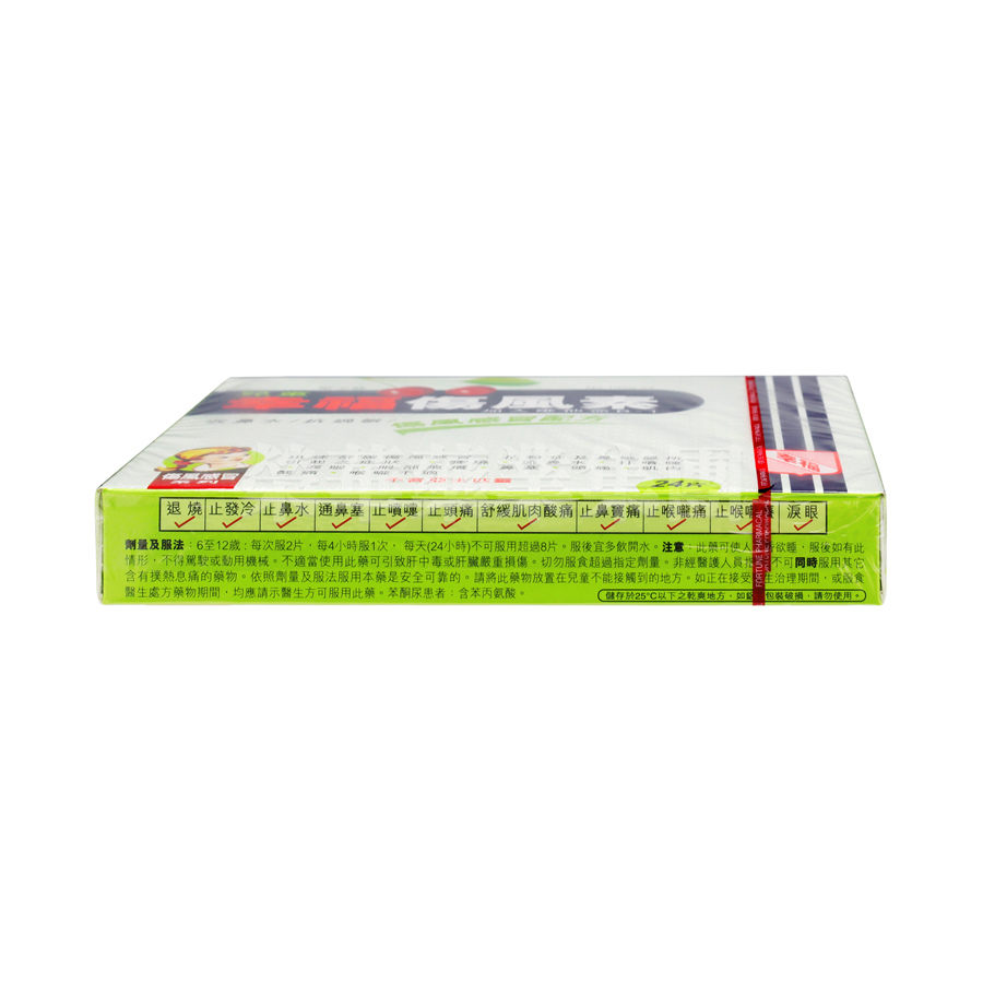 菓子味藥片,專為6至12歲兒童而配製。不含亞士匹靈,甚少引致腸胃不適。