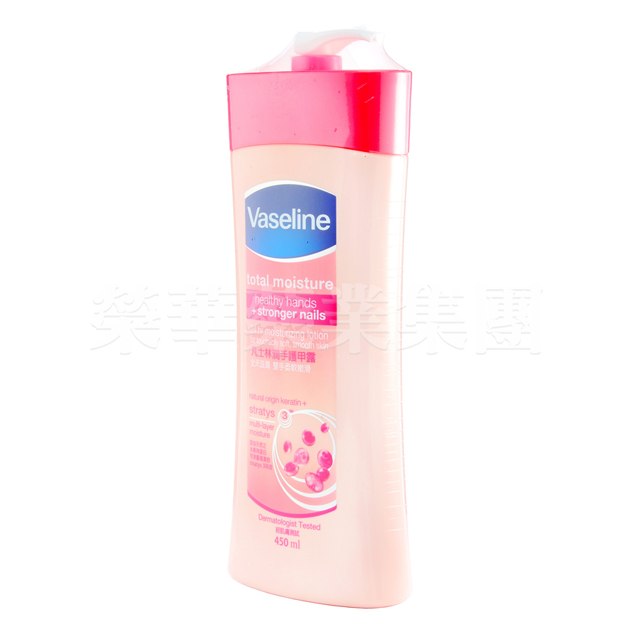 凡士林潤手護甲露,為手部肌膚度身訂做,含維他命E、水解角蛋白、橄欖油和太陽花籽油成份,提供所需營養,以柔軟雙手並強化指甲。