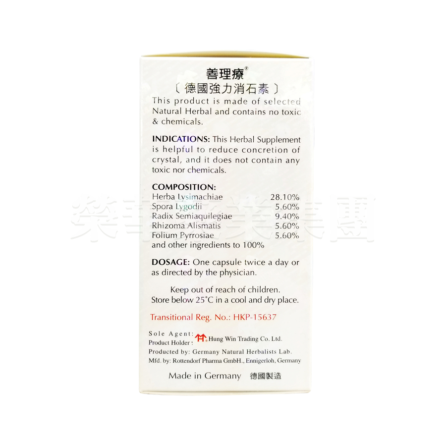 產品簡介: 能溶解結石,令結石經從尿道排出。