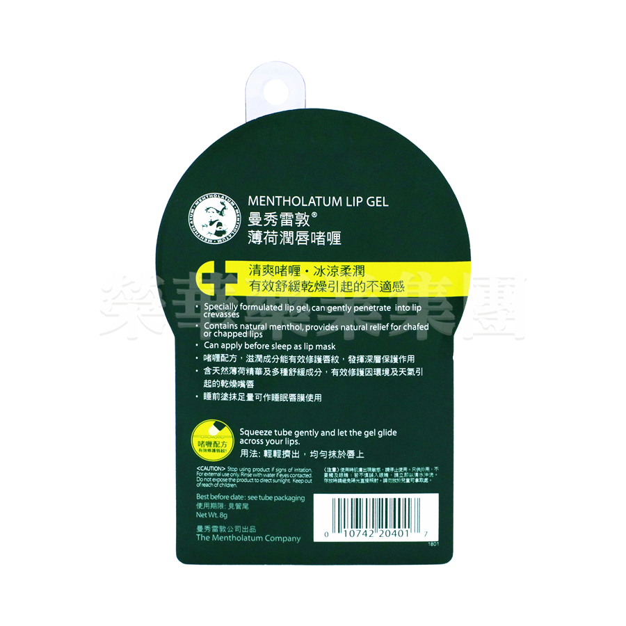 清涼薄荷護唇療效配方,特效護唇配方,性質柔潤啫喱配方,滋潤成份全面滲入唇隙發揮深層保護作用,迅速修護由傷風或嚴寒天氣所引起的嘴唇乾燥龜裂,保護乾燥及爆裂櫻唇,令雙唇煥發滋潤光采。
