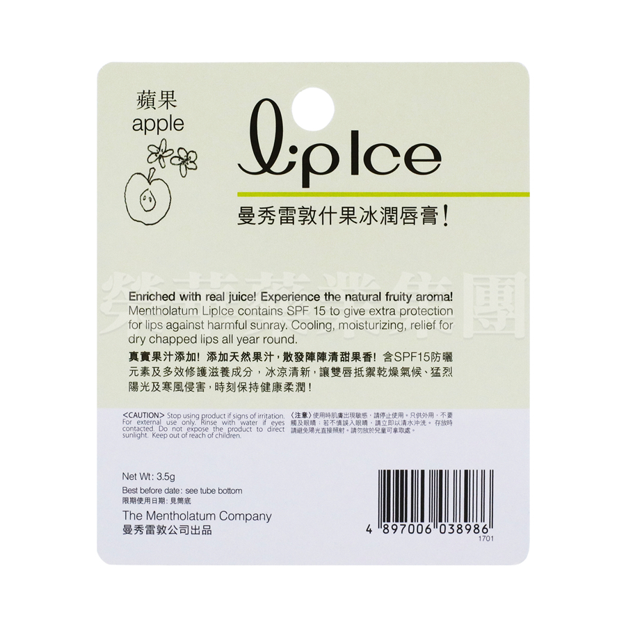 添加天然果汁,散發清甜果香。含SPF15防曬元素及多效修護成分,冰涼清新,讓雙唇抵禦乾燥氣候﹑猛烈陽光及寒風侵害,時刻保持健康柔潤。