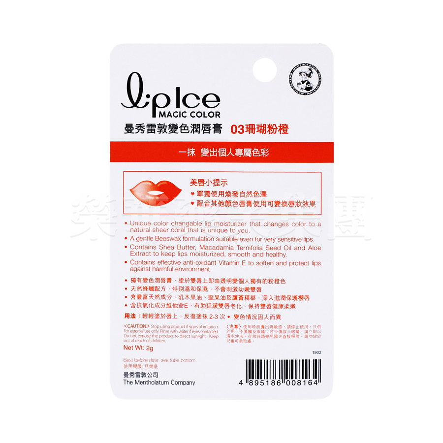 產品簡介: 獨有變色潤唇膏,塗於雙唇上即由透明變個人獨有的粉橙色。