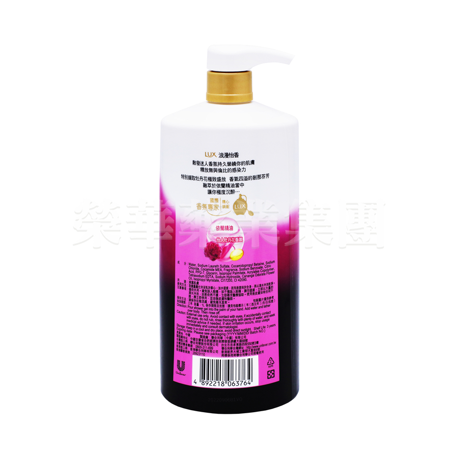 LUX精油香氛沐浴乳,依蘭精油・怡人牡丹花香氛。沐浴時散發迷人香氛,持久縈繞你的肌膚,釋放無與倫比的感染力。特別擷取牡丹花極致盛放、香氣四溢的剎那芬芳,融萃於依蘭精油香珠當中,讓你極度沉醉於極度怡人之中。