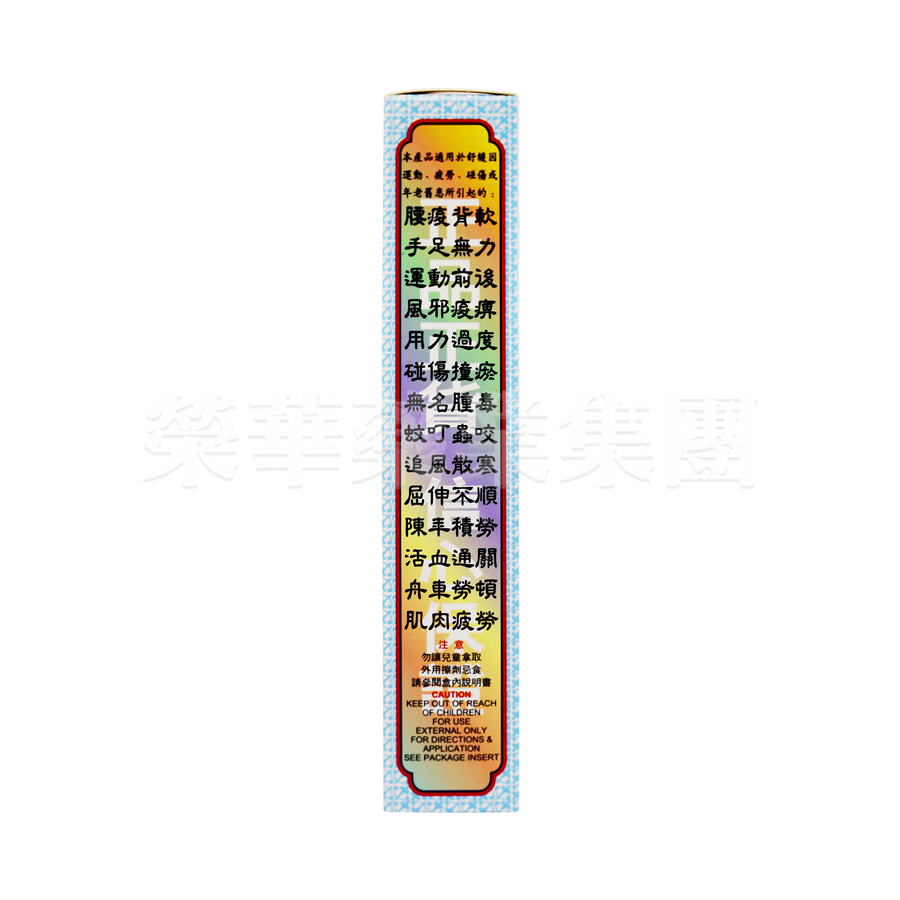 舒緩腰痠背軟,手足無力,運動前後,丟邪痠痺,用力過度,碰傷撞瘀,無名腫毒,蚊叮蟲咬,追風散寒,屈伸不順,陳豐積勞,活血通關,舟車勞頓,肌肉疫勞。