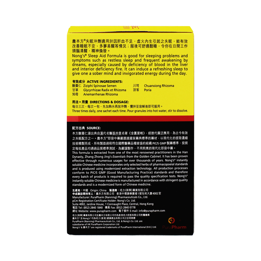 農本方 失眠沖劑適用於失眠、睡眠不安、多夢易醒等情況、能有效改善因精神緊張、工作壓力、過度疲勞及焦慮等而引起的失眠服後可改善睡眠質素,令你舒適酣睡,日間工作頭腦清醒,精神煥發。獨立包裝、即沖即服、方便可靠