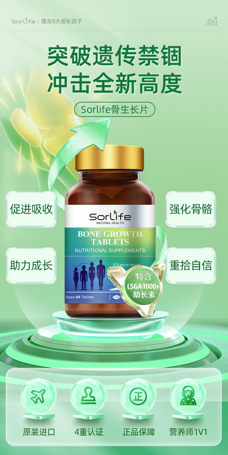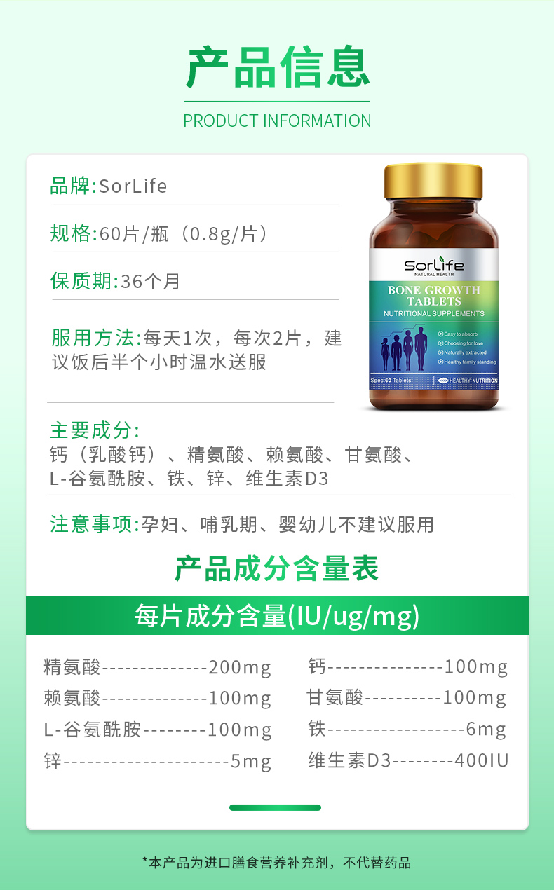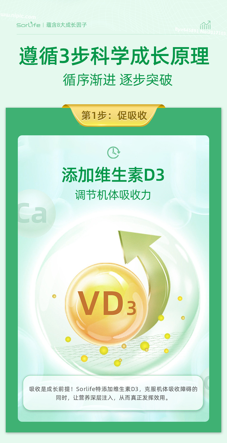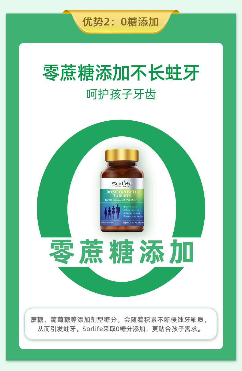 提供骨骼生長必要的營養元素,轉鈣入骨,強健骨骼;同時激活骨骼自身的原動力、促進骨骼的伸長,雙向結合;提高青少年食慾、提高智力和增強體質;降低日常骨質流失,維持增加骨密度,預防骨質疏鬆;預防結腸癌及減少肥胖