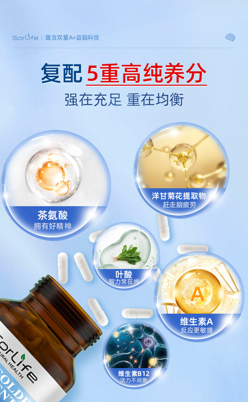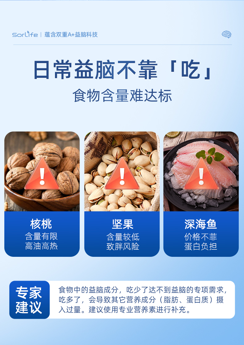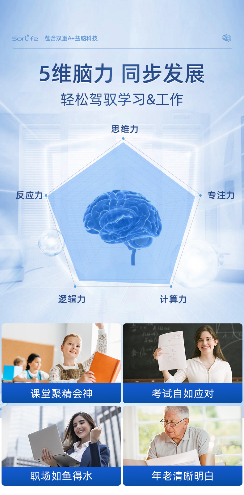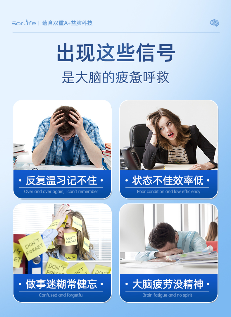 緩解大腦疲勞改善記憶力有效保護視力提高學習效率集中注意力減緩腦退化及損傷適宜人群:10歲以上人群背書困難,學習壓力大,注意力不集中眼睛酸澀,尤其初三、高三、考研的學生工作量大的腦力工作者經常忘事,記憶力衰退、反應能力變遲緩的中老年人