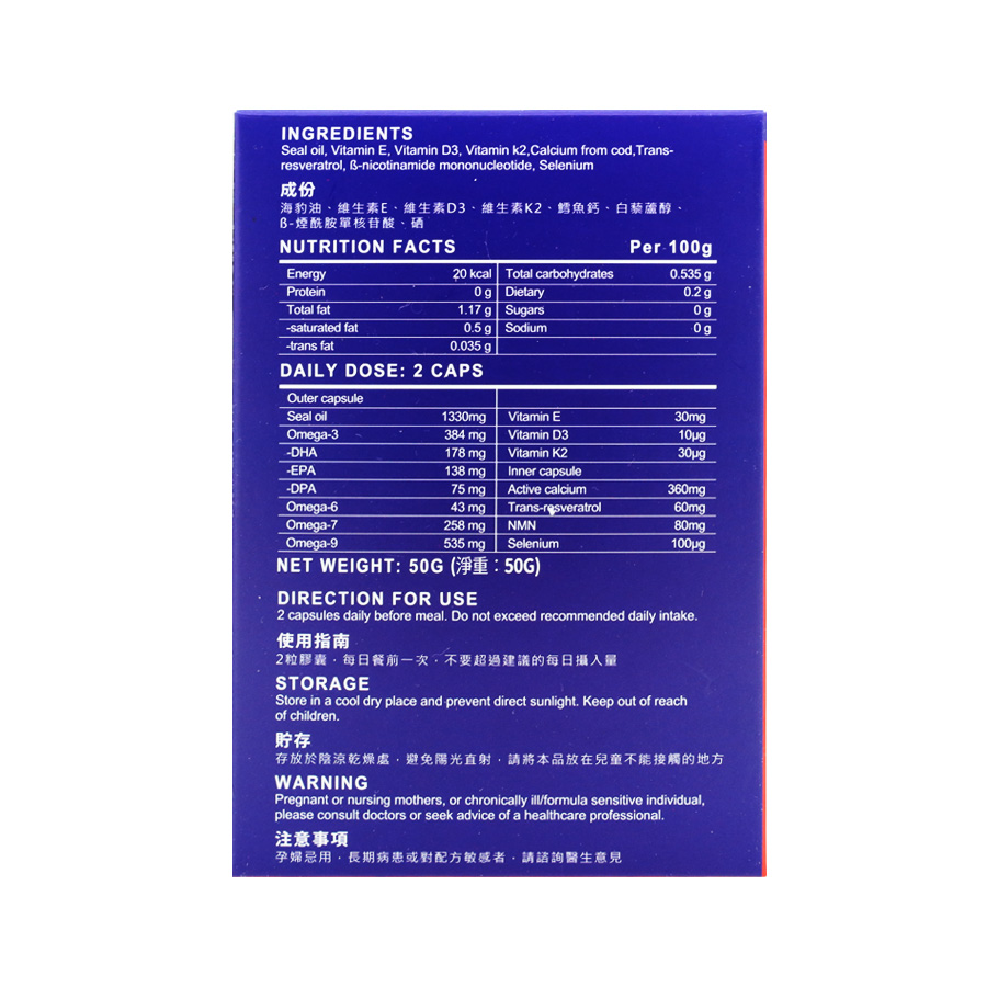 目前大部分中老年人都有缺鈣的現象,我們在海豹油的基礎上特別添加了從挪威野生鱈魚中提取的活性