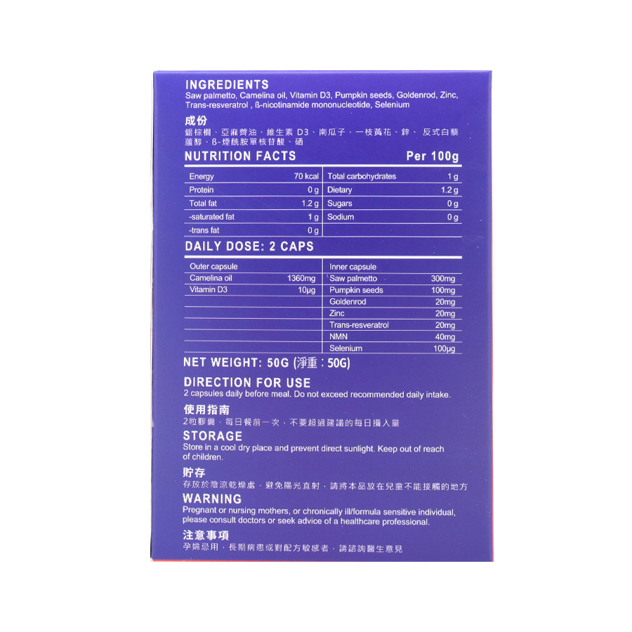 母膠囊採用的是植物油---亞麻薺油, 亞麻薺油是採用專門冷榨工藝進行生產的純天然食用植物油,富含人體必需脂肪酸和多種天然生物活性成分,不飽和脂肪酸含量達90%,其中ω-3、ω-6人體必需脂肪酸含量接近60%,以及含量豐富的VE和獨有的神經酸。其含有的γ-VE是VE的一種重要形式,其含量越高,機體的免疫功能越強,降低患癌症尤其是前列腺癌的風險。