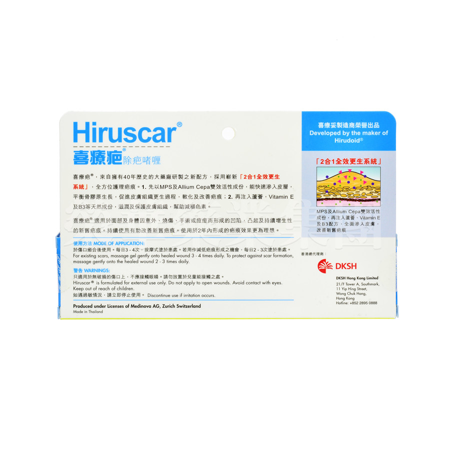 內修 - 全球首創7大分子組合當中的MPS,經醫學實驗證明能快速深入皮層,軟化疤痕,再配合Allantoin便能達致去除舊皮的功效,同時Allium Cepa Extract則能平衡骨膠原的增生,防止疤痕形式。外護 - 配合蘆薈精華及維他命B3、E,便能加速傷口修補、淡化色素及紅印,保護免受紫外光傷害,令嬌嫩而平滑的肌膚再生。喜療疤™除疤啫喱對於外傷、燒傷、燙傷、感染、暗瘡,甚至手術留下的傷痕都適合使用。